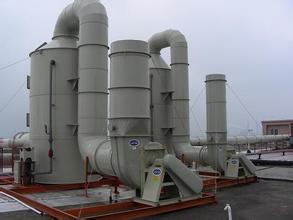 废气由风机引出后,首先进入酸雾废气净化塔。吸收塔中碱性洗涤液由循环泵抽至塔中经填料向下流动,酸雾废气逆流上升,在填料的湿润表面气液接触,发生一系列的物理化学反应,并由于浓度差而发生传质过程,从而完成了将气体的净化过程,净化后的废气脱水后经离心风机引出后达标排放。循环液定期排放至污水处理站。
